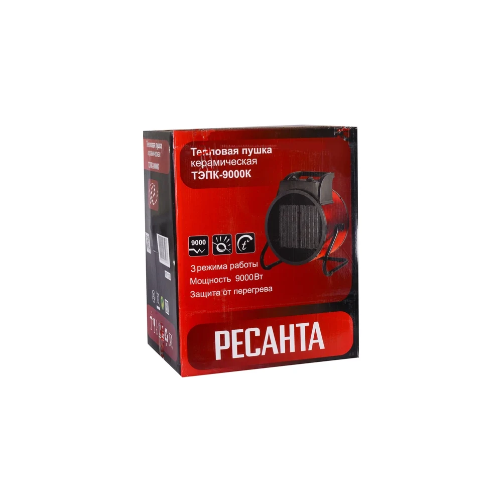 Тепловая пушка Ресанта ТЭПК-9000К представляет собой мощное отопительное устройство в корпусе из ударопрочного материала, основной задачей которого является обогрев строительных и небольших торговых помещений, мастерских, гаражей и павильонов. Электрические тепловые пушки являются наиболее безопасными в сравнении с дизельными и газовыми моделями.