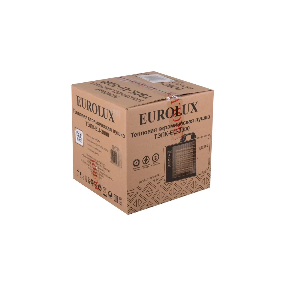 Тепловая электрическая пушка ТЭПК-EU-3000 (керамический нагревательный элемент,квадратная) Eurolux