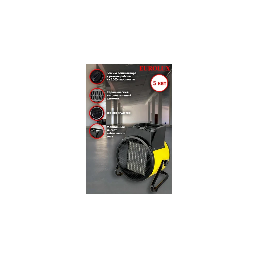 Модель электрической теплопушки Eurolux ТЭПК-EU-5000К мощностью 5000 Вт с керамическим нагревательным элементом станет оптимальным выбором для вентилирования и обогрева помещений любого назначения.