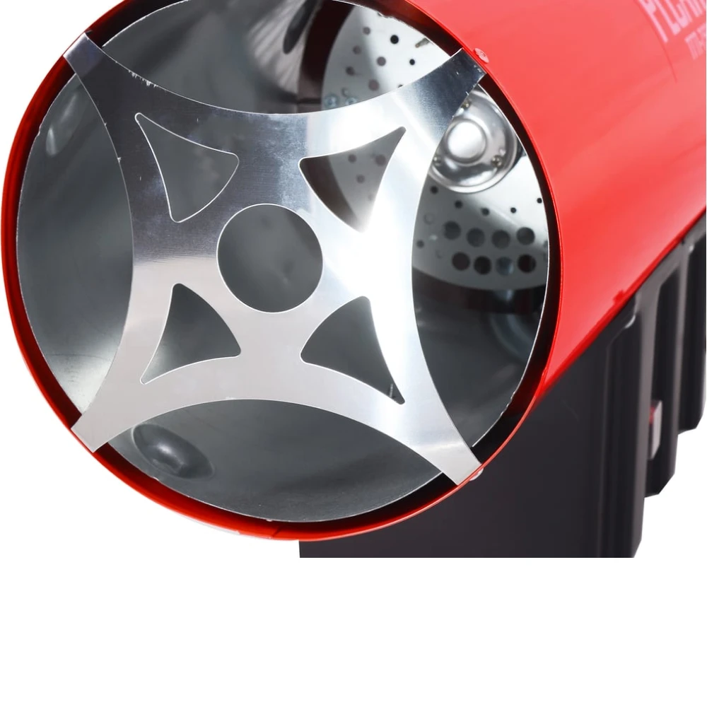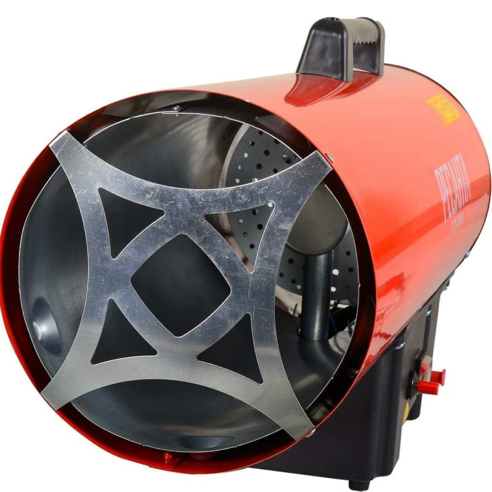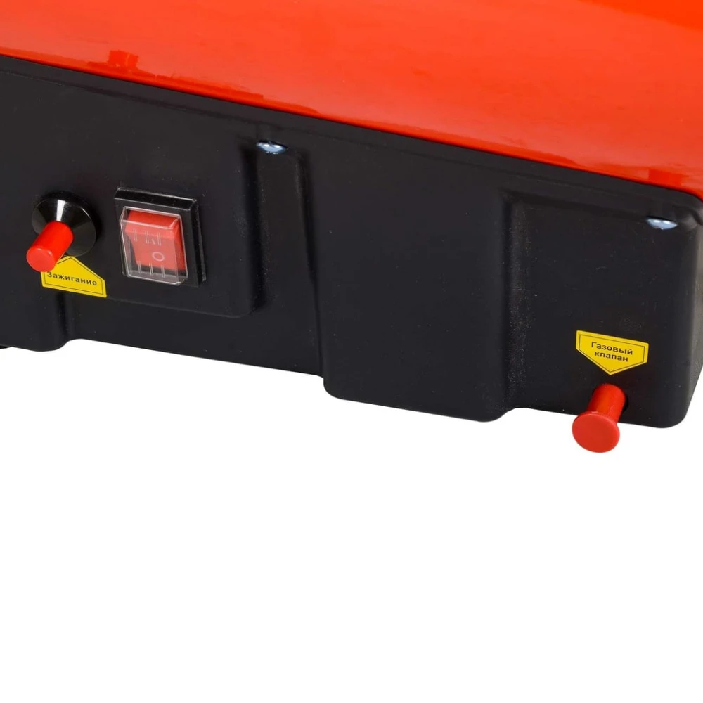Мощный поток воздуха 2000 м³/час обеспечивает эффективную вентиляцию и обогрев помещений большой площади. Биметаллический термодатчик позволяет управлять температурными показателями и контролировать силу пламени. Для перехода на режим вентиляции необходимо отсоединить газовый шланг. Функция защиты от перегрева гарантирует безопасность эксплуатации тепловой пушки. Защитный колпачок на кнопке включения предотвращает случайное нажатие.