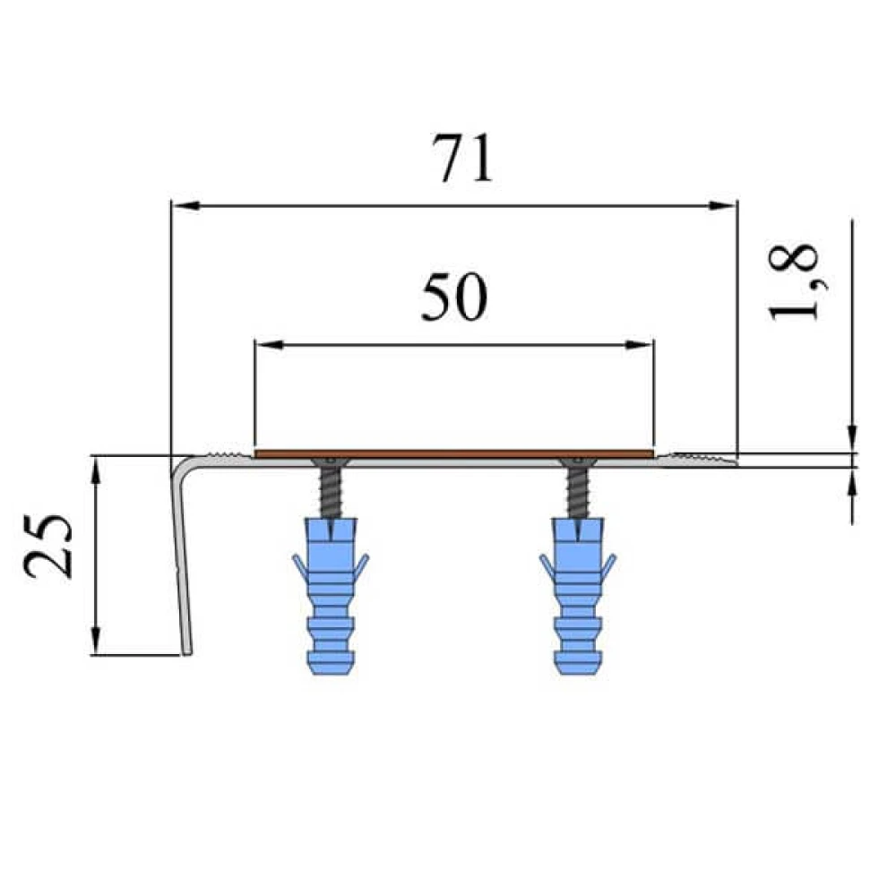 | КатегорияБаза под антискользящие ленты | ВидУгол | МатериалАлюминий-термоэластопласт |