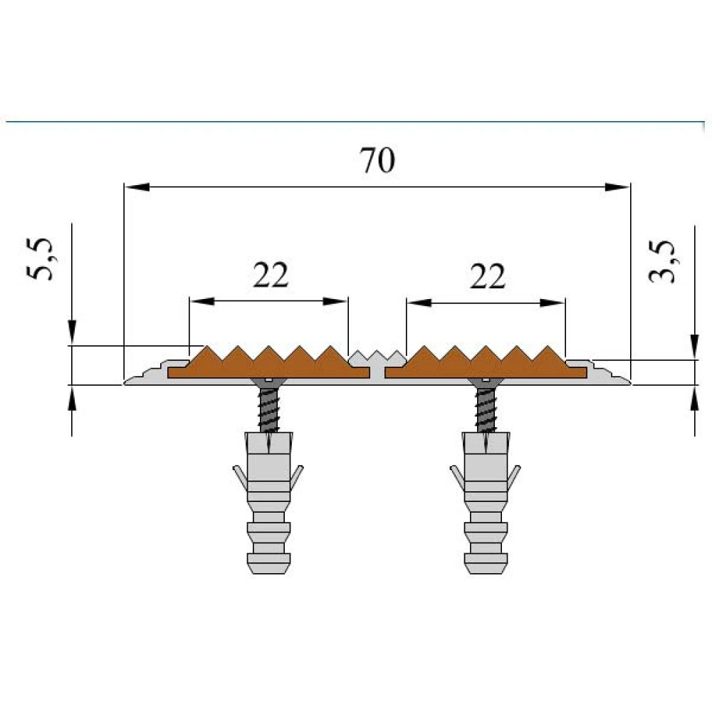 Технические характеристики Противоскользящая алюминиевая полоса с двумя вставками 70х5,5 мм 1 м бежевый