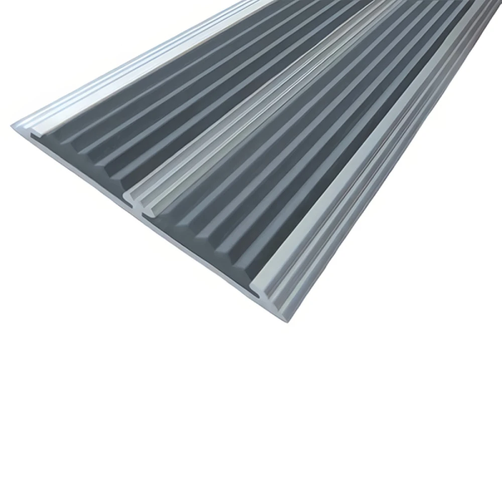 Противоскользящая алюминиевая полоса с двумя вставками 70х5,5 мм 1,5 м серый