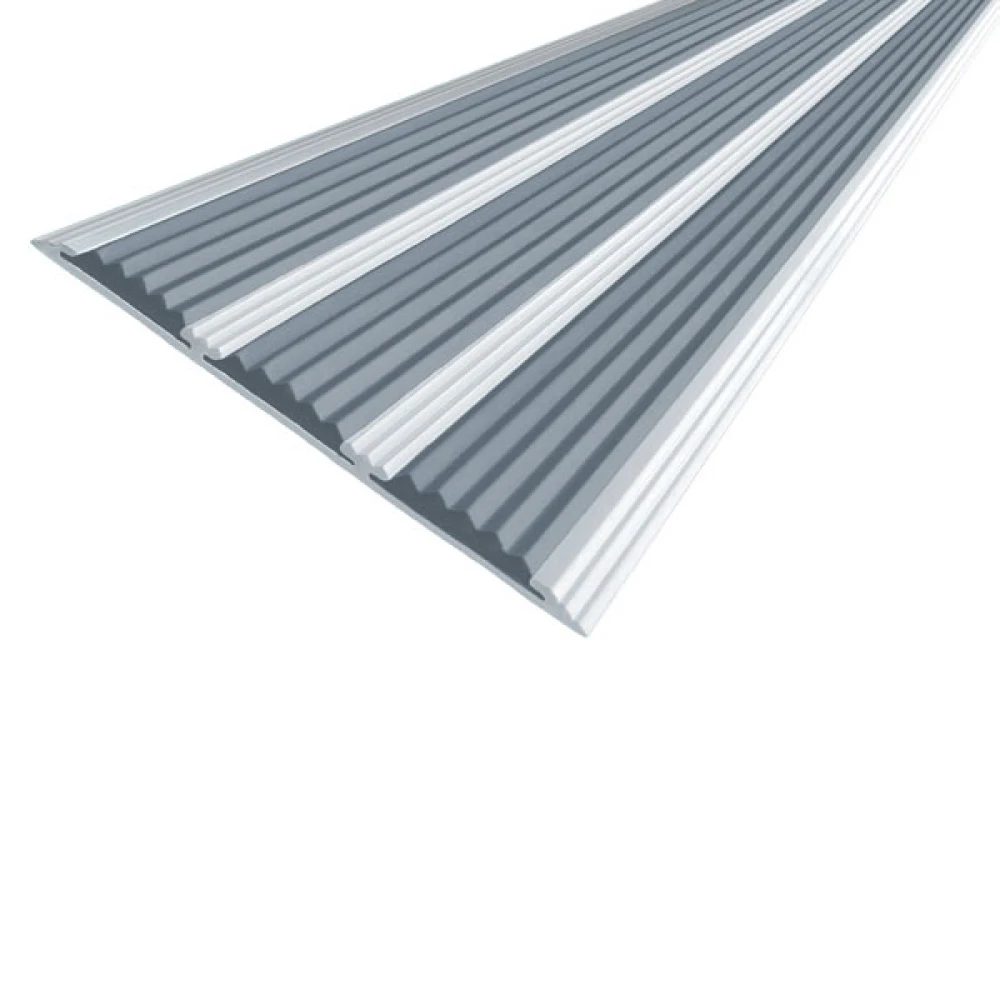 Противоскользящая алюминиевая самоклеящаяся полоса с тремя вставками 100х5,6 мм 2 м серый