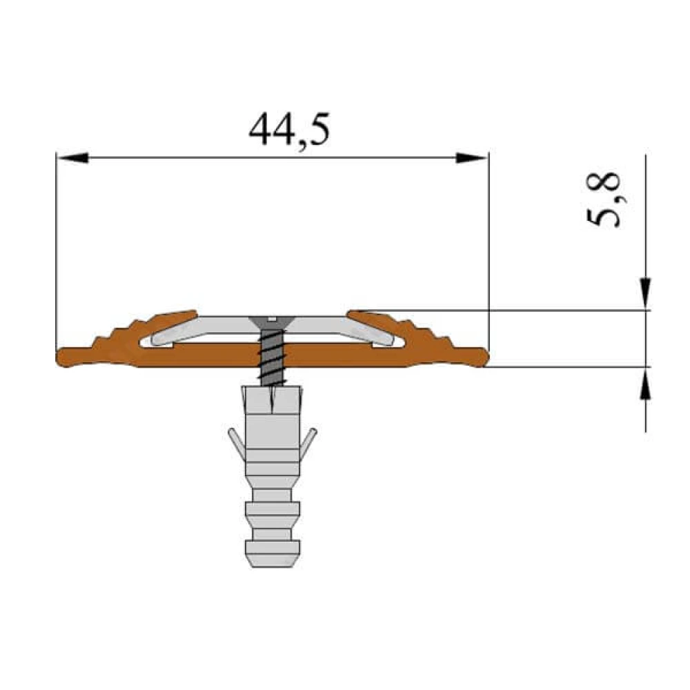Накладные алюминиевые профили с противоскользящими вставками предназначены для установки на уже облицованные ступени в качестве противоскользящей защиты и декоративного элемента. Крепёж изделия осуществляется дюбелями и винтами 6х40 мм и длиннее. Профили в розничном (индивидуальном) варианте упаковки поставляются с уже просверленными отверстиями под крепеж. Противоскользящие алюминиевые углы-пороги 42/23 в розничном варианте упаковки, без покрытия или с покрытием под золото, серебро, бронзу и медь поставляются в комплекте с дюбелями и винтами. 1. Разметьте место монтажа профиля. 2. Вытащите противоскользящую резиновую вставку из профиля, если она вставлена. 3. Если требуется длина профиля меньше, чем стандартную, то отрежьте ножовкой по металлу или болгаркой. 4. Если в профиле нет отверстий под монтаж, то нужно отметить места сверления маркером, затем, во избежании соскальзывания сверла, нужно еще пометить гвоздем или керном. Рекомендуемое расстояние между отверстиями: 20-40 см. Расстояние от концов горизонтальной части профиля должно быть не больше 10-15 см. 5. Просверлите отверстия сверлом по металлу диаметром 3,5 мм - 4,2 мм. Затем высверлите фаску под шляпки винтов или саморезов с помощью сверла диаметра 8 мм - 10 мм. 6. Наложите профиль на поверхность установки и маркером отметьте места сверления отверстий под дюбеля. 7. Просверлите отверстия в поверхности крепления сверлом диаметра 6 мм на глубину размера дюбеля. В случае бетона используйте режим перфоратора. При сверлении плитки сначала на малых оборотах просверливается плитка сверлом с алмазным напылением (без режима перфоратора), а затем досверливаете на нужную глубину бетонную ступеньку в режиме перфоратора. В случае металлической или деревянной поверхности крепления применяйте соответствующие типы сверла по металлу или дереву. 8. В проделанные отверстия вставьте дюбеля. Рекомендуем применять деревянные, чтобы туда не попадала вода, которая в зимний период будет многократно замерзать и крошить материал поверхности крепления, что приведет к разбалтыванию профиля. В случае применения пластиковых дюбелей, то рекомендуем их залить герметиком. 9. Желательно нанести на нижней плоской поверхности профиля защитный слой из любого герметика. Это воспрепятствует попаданию воды и мелкого песка между профилем и облицовкой, что продлит эксплуатацию и помешает абразивным крупинкам грязи создавать скрежет при прохождении пешеходов. 10. Аккуратно, так чтобы отверстия профиля совпадали со вставленными дюбелями, установите профиль и притяните его с помощью саморезов или винтов. 11. Проверьте надёжность крепления. 12. Вставьте в паз алюминиевого профиля резиновую противоскользящую вставку. Алюминиевые противоскользящие профили, закреплённые с помощью дюбель-гвоздей или саморезов, отличаются повышенной надёжности, что позволяет им эксплуатироваться в условиях высокой нагрузки и в течении длительного времени.