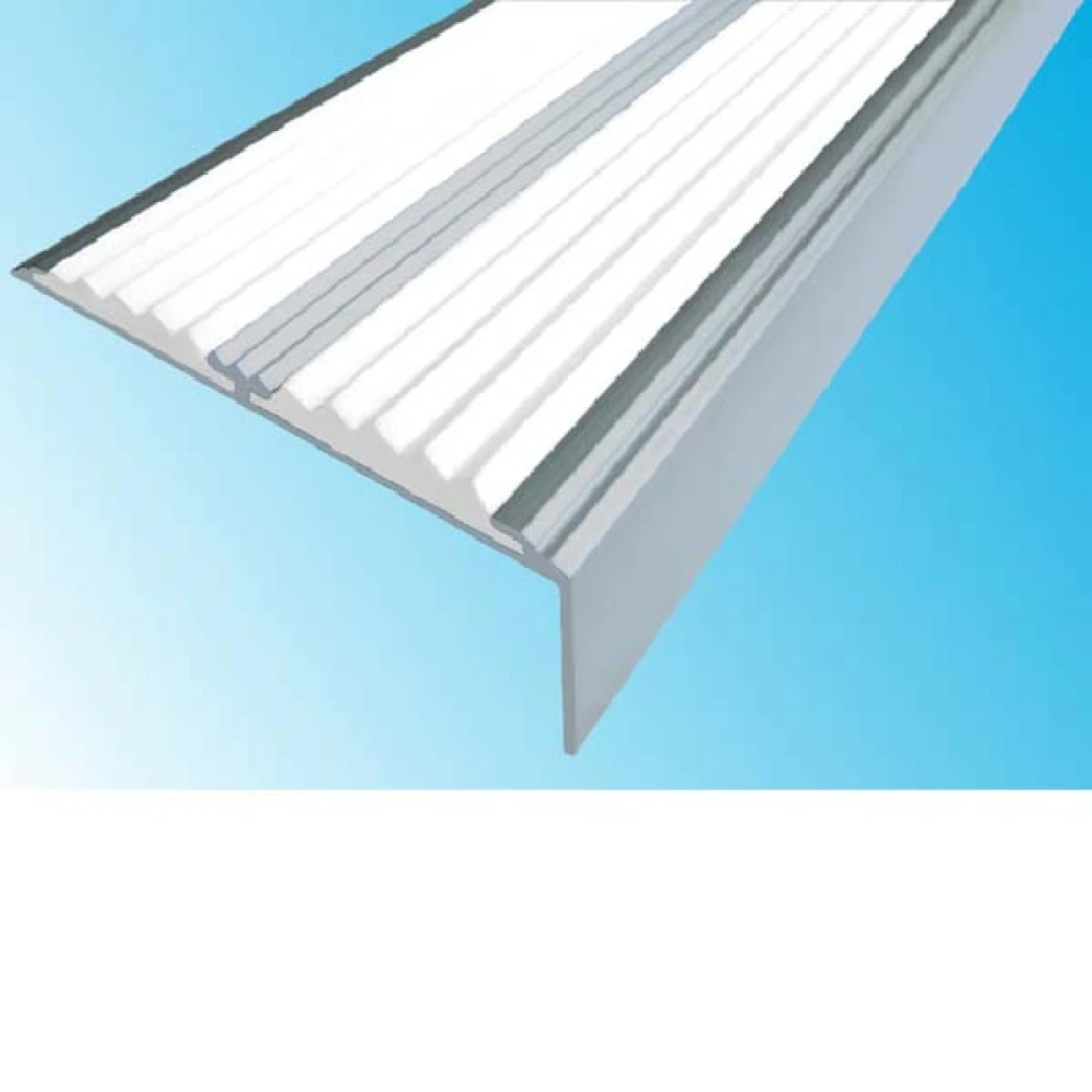 Противоскользящий алюминиевый самоклеящийся угол-порог с двумя вставками 70х5,5х22,5 мм, 1 м белый