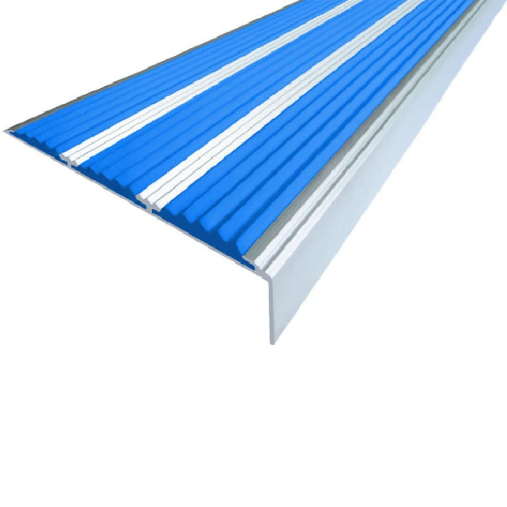 Противоскользящий алюминиевый самоклеящийся угол с тремя вставками 98х5,6х22,4 мм 2 м синий