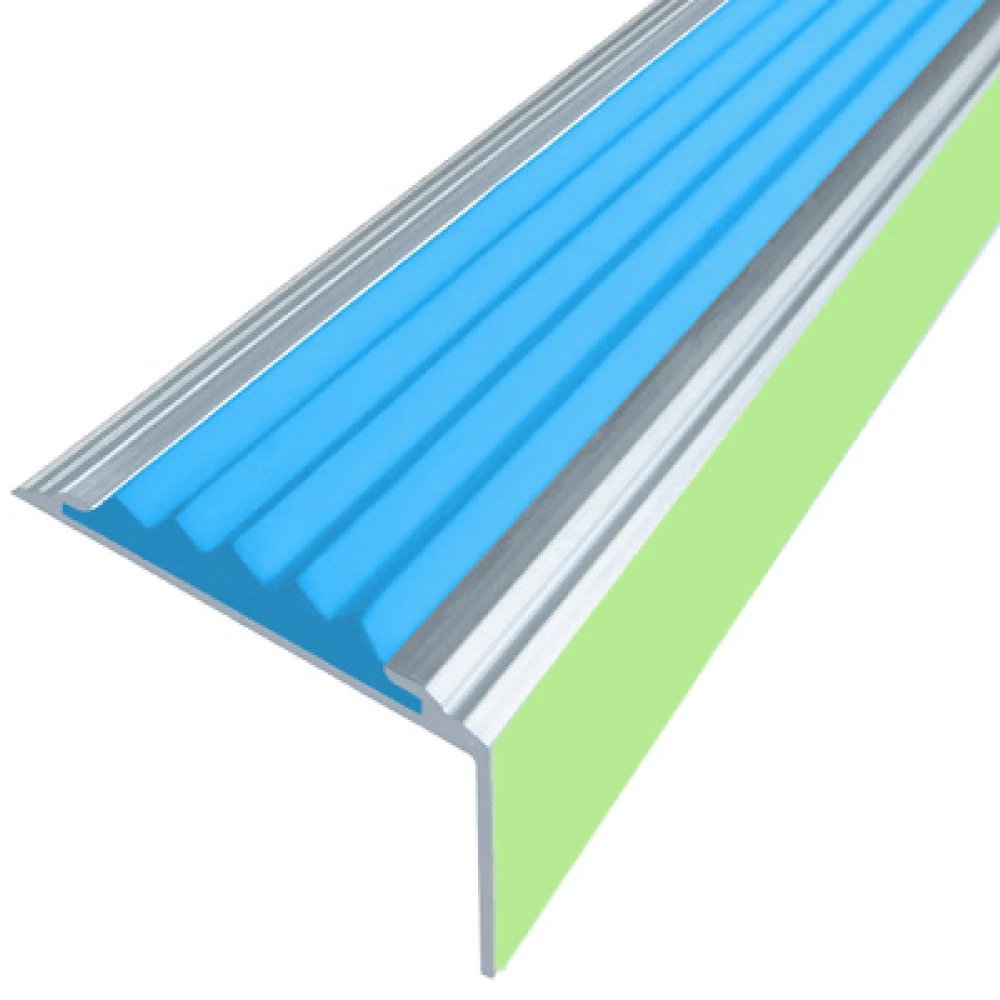 Противоскользящий алюминиевый угол-порог АУ38 ФЭС 38х5,5х22мм (резин.вст.), 1м, голубой