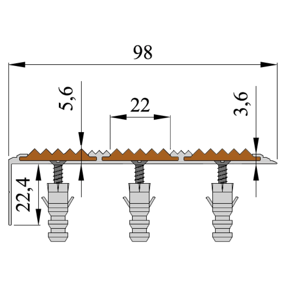 | КатегорияПротивоскользящие профили | ВидУгол-порог | ТипНакладной |