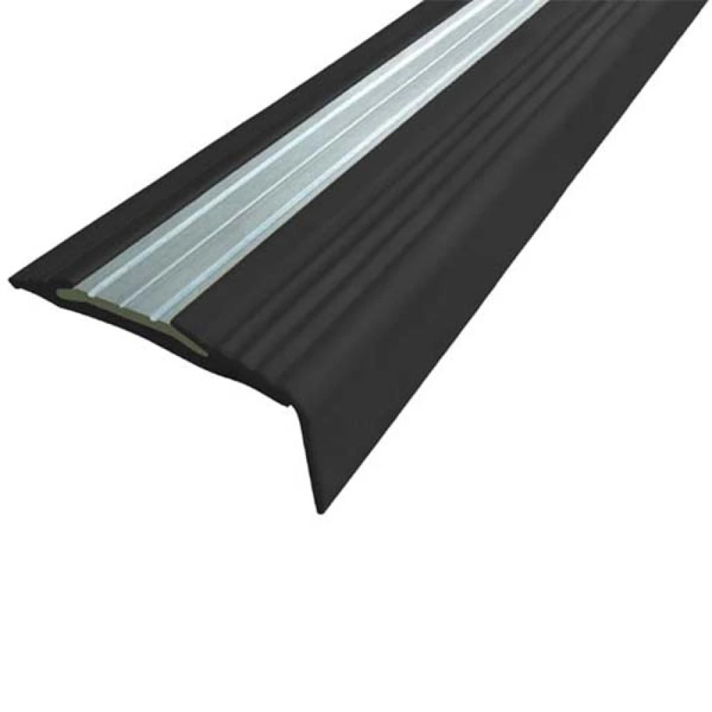 Угол NoSlipper предназначен для установки на поверхности ступеней лестниц в качестве противоскользящего профиля безопасности и как декоративная отделка. Профиль выполнен из термоэластопласта с вставкой из алюминия.