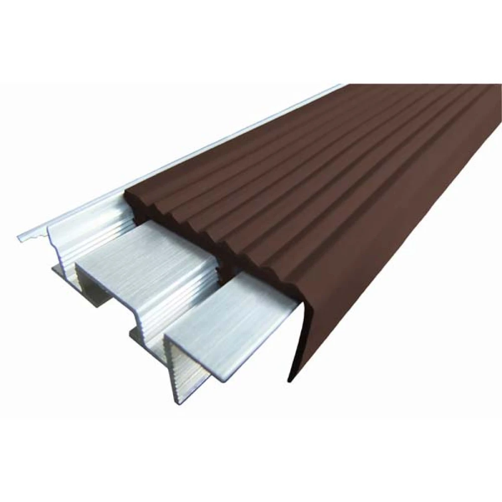 Закладной противоскользящий алюминиевый профиль SafeStep 1,2 м 43 мм/24 мм темно-коричневый