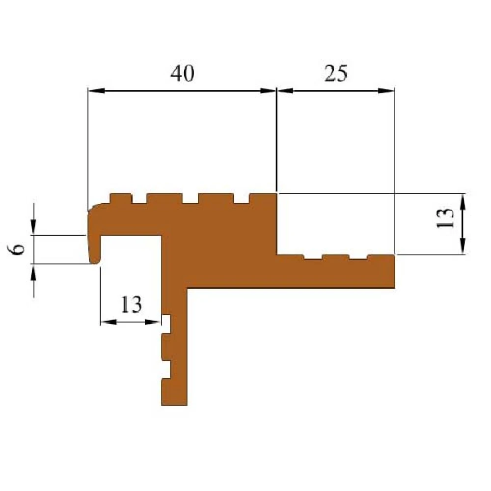 Противоскользящий закладной профиль БЕЗОПАСНЫЙ ШАГ с двумя закладными элементами предназначен для установки на углах ступеней лестниц. Ширина рабочей поверхности профиля - 40 мм, высота - 13 мм, длина декоративной ножки профиля-6 мм. Стандартная длина бухты позволяет обустройство длинных ступеней без видимых стыков. Профиль выполнен из гибкого термоэластопласта, что позволяет монтаж в случаях когда ступени имеют изгиб. Профиль сохраняет свои характеристики в температурном диапазоне от -40°С до +60ºС.
