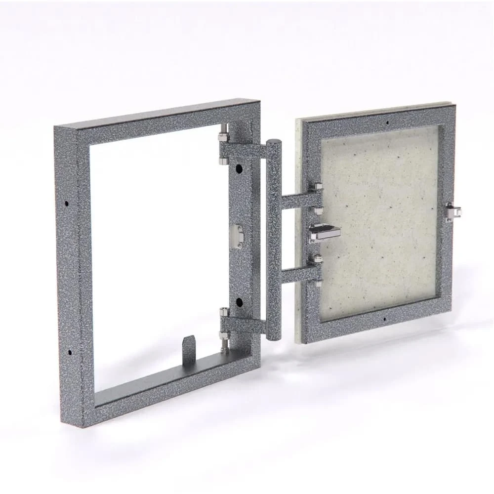 Рама люка изготовлена из стальной трубы 50*25. Все стальные части конструкции покрашены полимерной порошковой краской. Заполнение двери - влагостойкое гипсоволокно. Люк универсален и может иметь как левое, так и правое открывание.