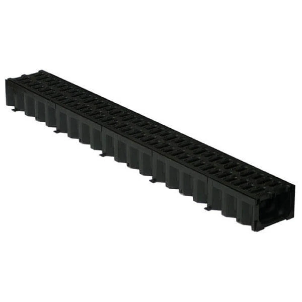 Комплект состоит из пластикового лотка длинной 1 метр и пластиковой решетки, такой же длинны. Изготовлен из высококачественного пластика и выдерживает температуры в диапазоне от -30 до +60°С. Высота данного лотка 80 мм, что позволяет использовать его в местах с ограниченной глубиной заложения. Гладкая внутренняя поверхность обеспечивает высокую скорость течения ливневых вод, а эффективная система крепления решетки к каналу не позволяет ей выскакивать с посадочного места.