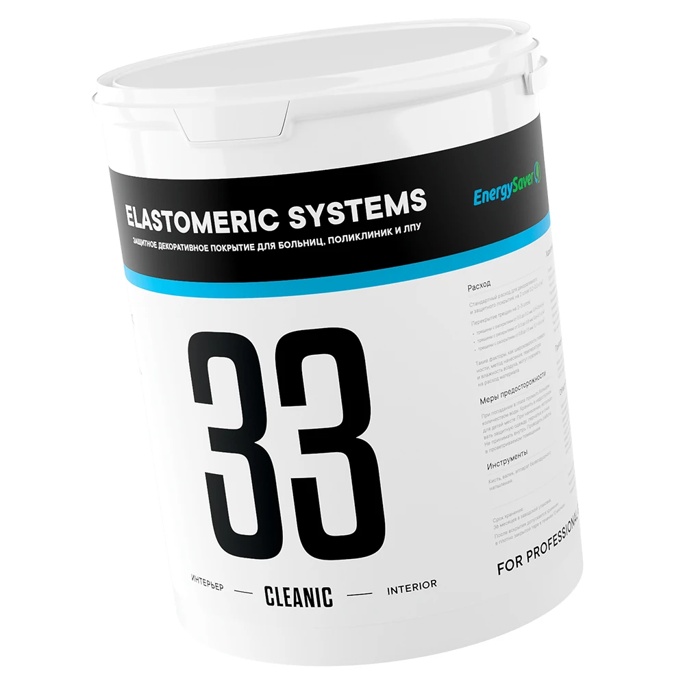 Окрашиваемая поверхность должна быть сухой и чистой. Остатки непрочно держащегося старого покрытия, грязь, пыль необходимо очистить механически. Ранее окрашенную масляной краской или эмалью поверхность обработать шкуркой до шероховатости, удалить образовавшуюся пыль. Зашпатлевать все неровности, после высыхания отшлифовать. Меловые, впитывающие и пористые поверхности предварительно обработать грунтом ELASTOMERIC-010. Для санации крупных трещин шпателем заполнить полости, содрать остатки покрытия и дать высохнуть. Слабо впитывающие и прочные основания не требуют грунтования. Подготовка поверхности влияет на качество покрытия и его долговечность. Перед использованием необходимо тщательно перемешать материал низкоскоростным миксером не менее 2-3 минут. Покрытие 33 CLEANIC наносить валиком, кистью или при помощи аппарата безвоздушного напыления. При нанесении первого слоя допускается разбавлять материал чистой водой, но не более 10 %. Толщина сухой пленки покрытия на трещинах должна быть максимально возможной. Длительность высыхания зависит от погодных условий. Последующие слои наносить с интервалом от 4 до 12 часов. не применять покрытие 33 CLEANIC, если погодные условия (осадки, заморозки) не способствуют высыханию.Расход