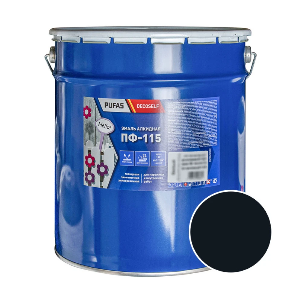 Технические характеристики Эмаль Pufas Decoself ПФ-115 чёрная 25 кг