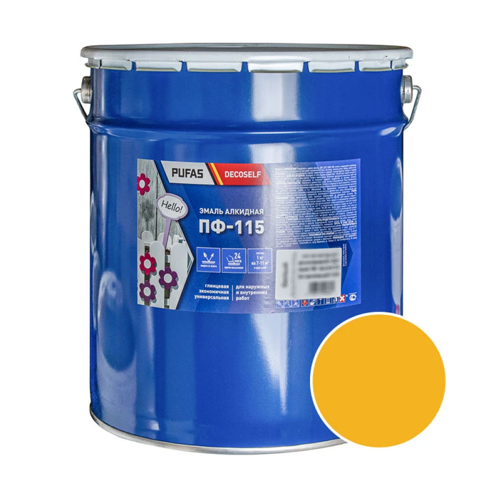 Эмаль Pufas Decoself ПФ-115 жёлтая 25 кг