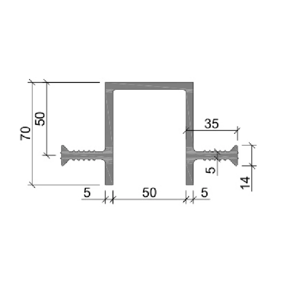 Гидрошпонка ДЗ-70/50-2/35 из ПВХ – это деформационная защитная гидрошпонка из ПВХ-П. Ширина – 70 мм при ширине деформационного узла 50 мм. Для монтажа достаточно 2 анкеров. Их общая высота с учетом тела шпонки – 35 мм. Это нетипичные размеры гидроизоляционной шпонки для строительных и инженерных работ. Минимальный заказ от 5 пог.м.