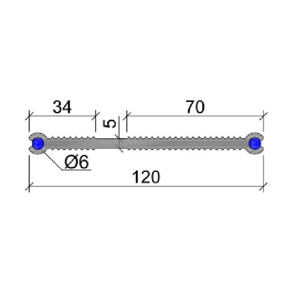 Гидрошпонка ХВН-120 2х06 – это внутренняя гидрошпонка для технологических швов бетонирования с каналами под набухающие профили. Основной материал – композиция на основе поливинилхлорида. Для монтажа нужны два крепления. Конструкция выдерживает давление воды до 0,85 МПа.
