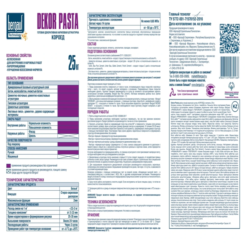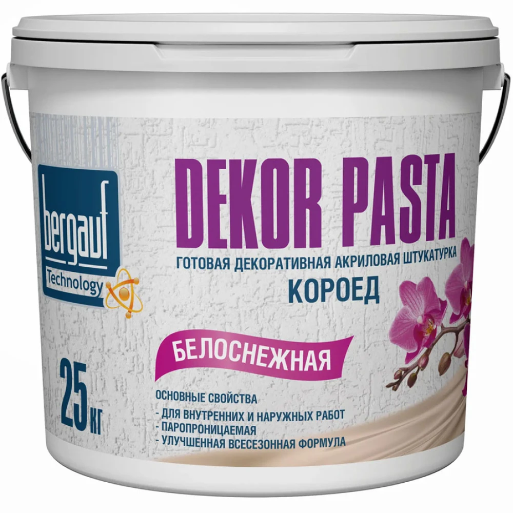 Технические характеристики Штукатурка декоративная готовая Bergauf Dekor Pasta 2 мм U короед, 25 кг