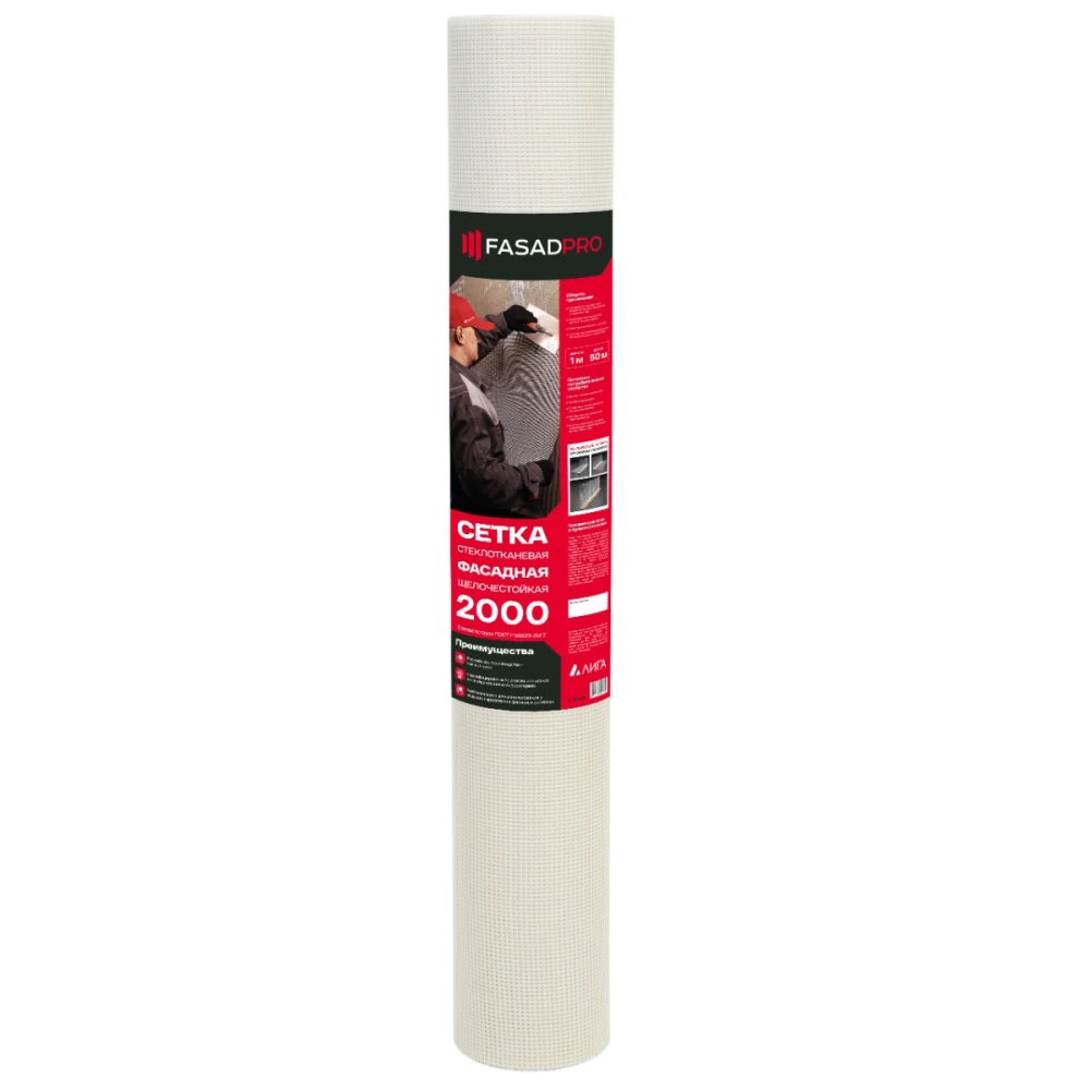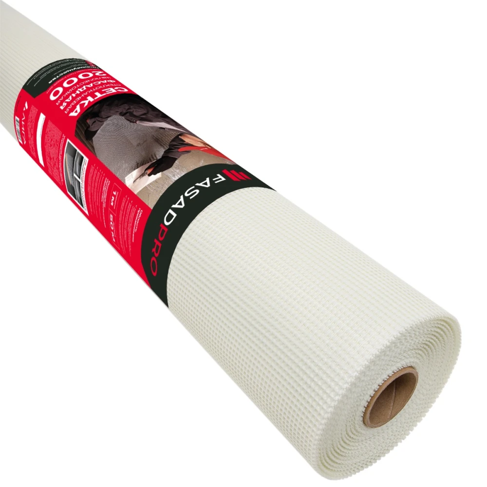 Сетка стеклотканевая фасадная (рядовая) FasadPro 4х5 мм, 1х50 м, 2000 Н, ГОСТ Р 55225-2017, А