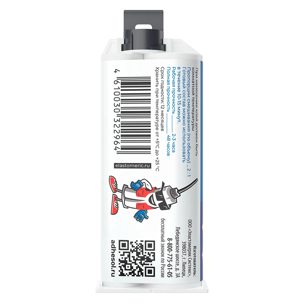 Клей должен быть комнатной температуры. Перед использованием состава необходимо закрепить шприц в пистолет-дозатор, выдавить некоторое количество клея до того момента, пока из обоих носиков не начнет равномерно поступать компонент А и компонент В. Затем, на шприц необходимо закрепить смесительную насадку и также выдавить некоторое количество состава, пока смесь не станет однородной. Клей наносится в количестве необходимом для покрытия всей поверхности склеиваемых деталей. Необходимо обеспечить возможность выхода воздуха из-под склеиваемых элементов при их сопряжении, путём нанесения незамкнутой клеевой линии (например: змейкой или зигзагом). Время выработки (жизнеспособность) готовой смеси 10-20 мин. При этом, не рекомендуется наносить клеевую линию круговыми движениями, поскольку в указанном случае, воздух может остаться в клеевом слое, что может существенно снизить его конечные характеристики. При сопряжении деталей, необходимо обеспечить их достаточное сжатие. Смещение деталей относительно друг друга с момента начала отверждения клея и до момента их склеивания - недопустимо. При необходимости используйте струбцины, зажимы, фиксаторы.| Категория | Клей |