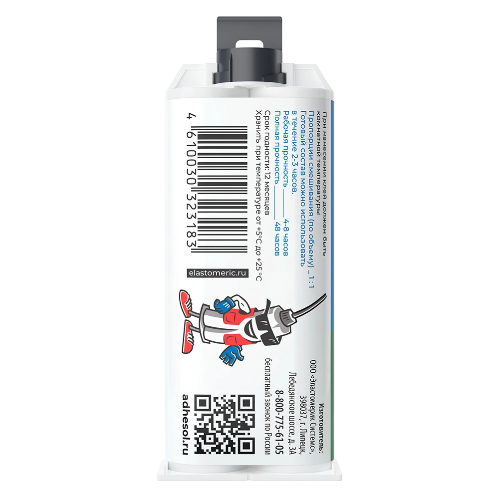Клей должен быть комнатной температуры. Перед использованием состава необходимо закрепить шприц в пистолет-дозатор, выдавить некоторое количество клея до того момента, пока из обоих носиков не начнет равномерно поступать компонент А и компонент В. Затем, на шприц необходимо закрепить смесительную насадку и также выдавить некоторое количество состава, пока смесь не станет однородной. Клей наносится в количестве необходимом для покрытия всей поверхности склеиваемых деталей. Необходимо обеспечить возможность выхода воздуха из-под склеиваемых элементов при их сопряжении, путём нанесения незамкнутой клеевой линии (например: змейкой или зигзагом). Время выработки (жизнеспособность) готовой смеси 10-20 мин. При этом, не рекомендуется наносить клеевую линию круговыми движениями, поскольку в указанном случае, воздух может остаться в клеевом слое, что может существенно снизить его конечные характеристики. При сопряжении деталей, необходимо обеспечить их достаточное сжатие. Смещение деталей относительно друг друга с момента начала отверждения клея и до момента их склеивания - недопустимо. При необходимости используйте струбцины, зажимы, фиксаторы.| Категория | Клей |