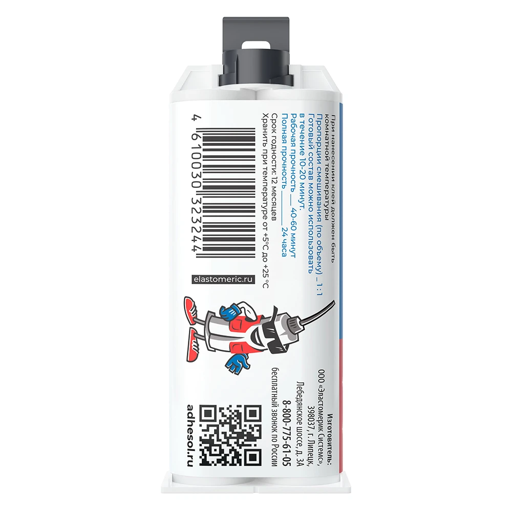 Клей должен быть комнатной температуры. Перед использованием состава необходимо закрепить шприц в пистолет-дозатор, выдавить некоторое количество клея до того момента, пока из обоих носиков не начнет равномерно поступать компонент А и компонент В. Затем, на шприц необходимо закрепить смесительную насадку и также выдавить некоторое количество состава, пока смесь не станет однородной. Клей наносится в количестве необходимом для покрытия всей поверхности склеиваемых деталей. Необходимо обеспечить возможность выхода воздуха из-под склеиваемых элементов при их сопряжении, путём нанесения незамкнутой клеевой линии (например: змейкой или зигзагом). Время выработки (жизнеспособность) готовой смеси 10-20 мин. При этом, не рекомендуется наносить клеевую линию круговыми движениями, поскольку в указанном случае, воздух может остаться в клеевом слое, что может существенно снизить его конечные характеристики. При сопряжении деталей, необходимо обеспечить их достаточное сжатие. Смещение деталей относительно друг друга с момента начала отверждения клея и до момента их склеивания - недопустимо. При необходимости используйте струбцины, зажимы, фиксаторы.| Категория | Клей |