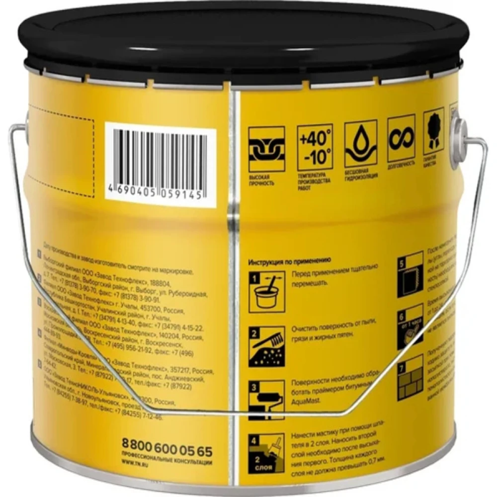 Технические характеристики Мастика битумная гидроизоляционная АкваМаст для ремонта и приклеивания 10 кг