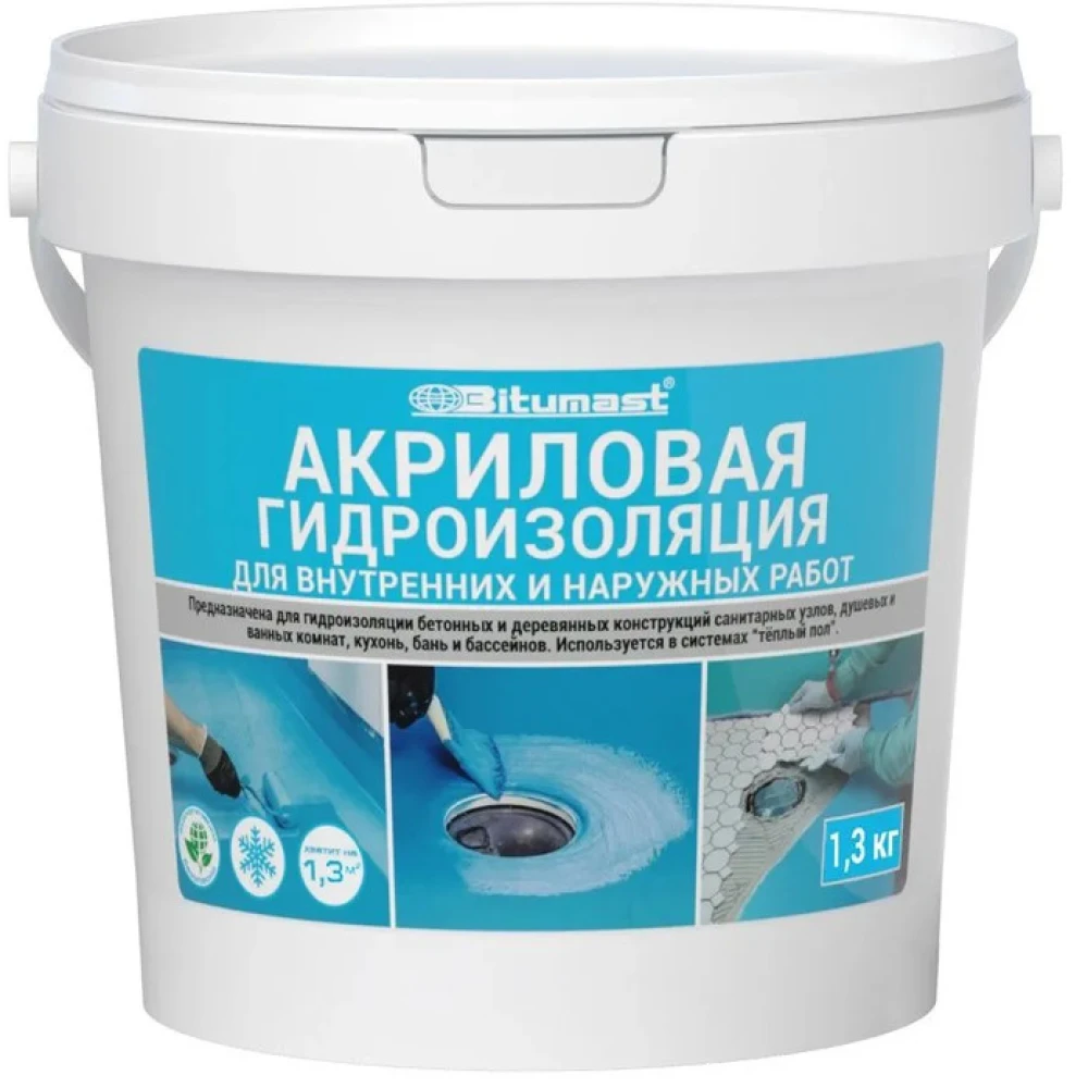 Акриловая гидроизоляция БИТУМАСТ 1,3кг для внутренних работ
