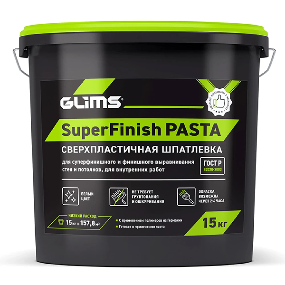Технические характеристики Шпатлёвка финишная SuperFinish PASTA сверхпластичная, 15 кг