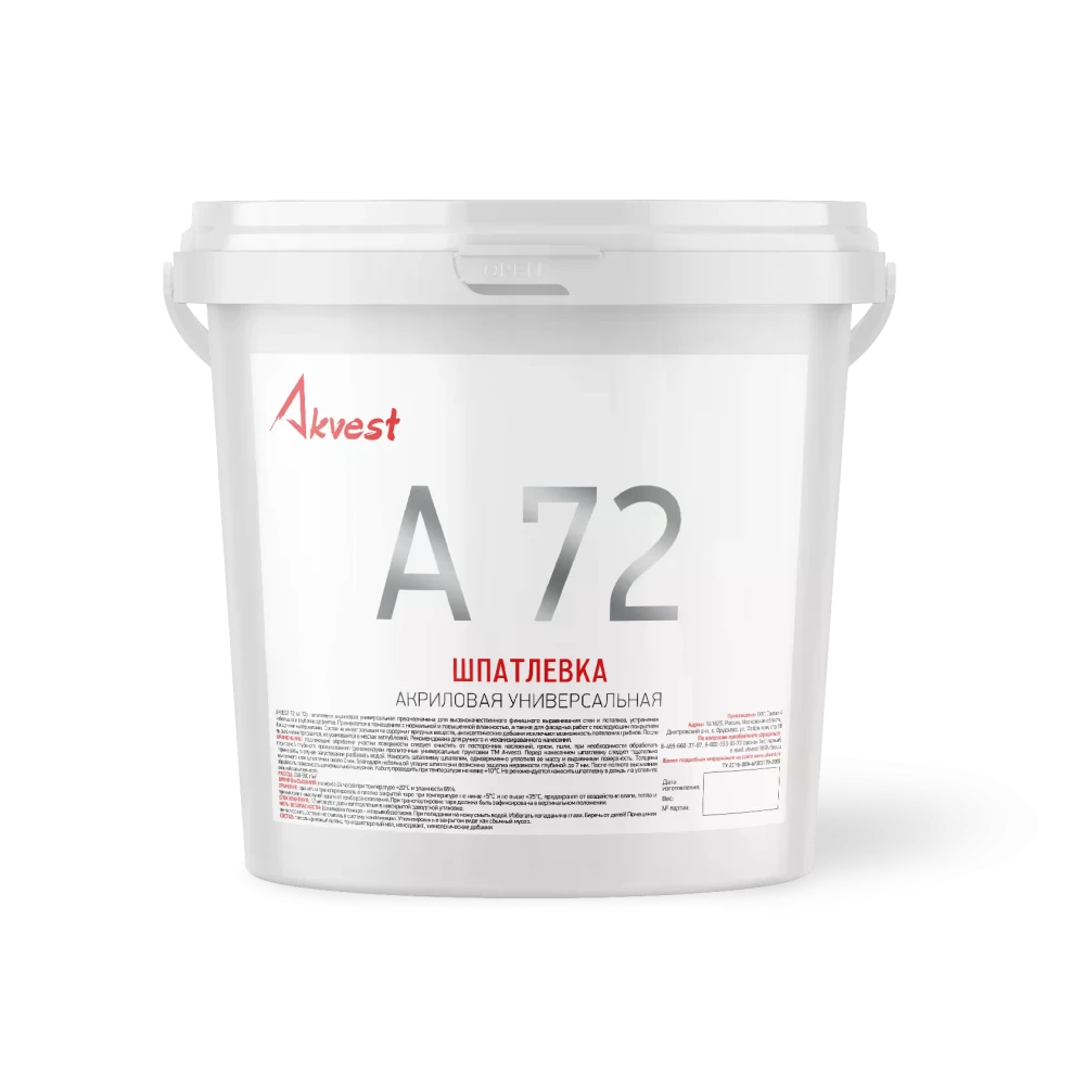 Шпатлевка акриловая универсальная А 72 предназначена для высококачественного финишного выравнивания стен и потолков, устранения небольших и глубоких дефектов. Применяется в помещениях с нормальной и повышенной влажностью, а также для фасадных работ с последующим покрытием фасадными материалами. Состав не имеет запаха и не содержит вредных веществ, антисептические добавки исключают возможность появления грибков. После высыхания не трескается, не усаживается в местах заглублений.