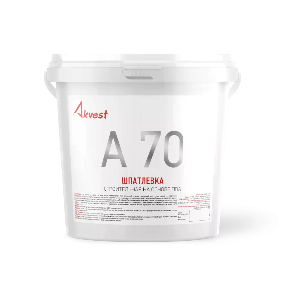 Технические характеристики Шпатлёвка на основе ПВА А70, 1,5 кг