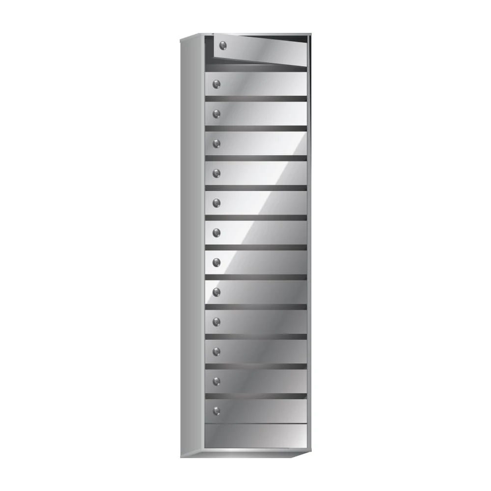 Почтовые ящики этой серии выполнены полностью из нержавеющего металла и предназначены для многоквартирных домов элитного класса, бизнес-центров, гостиниц и других учреждений. Каждое отделение оборудовано замком и номером.