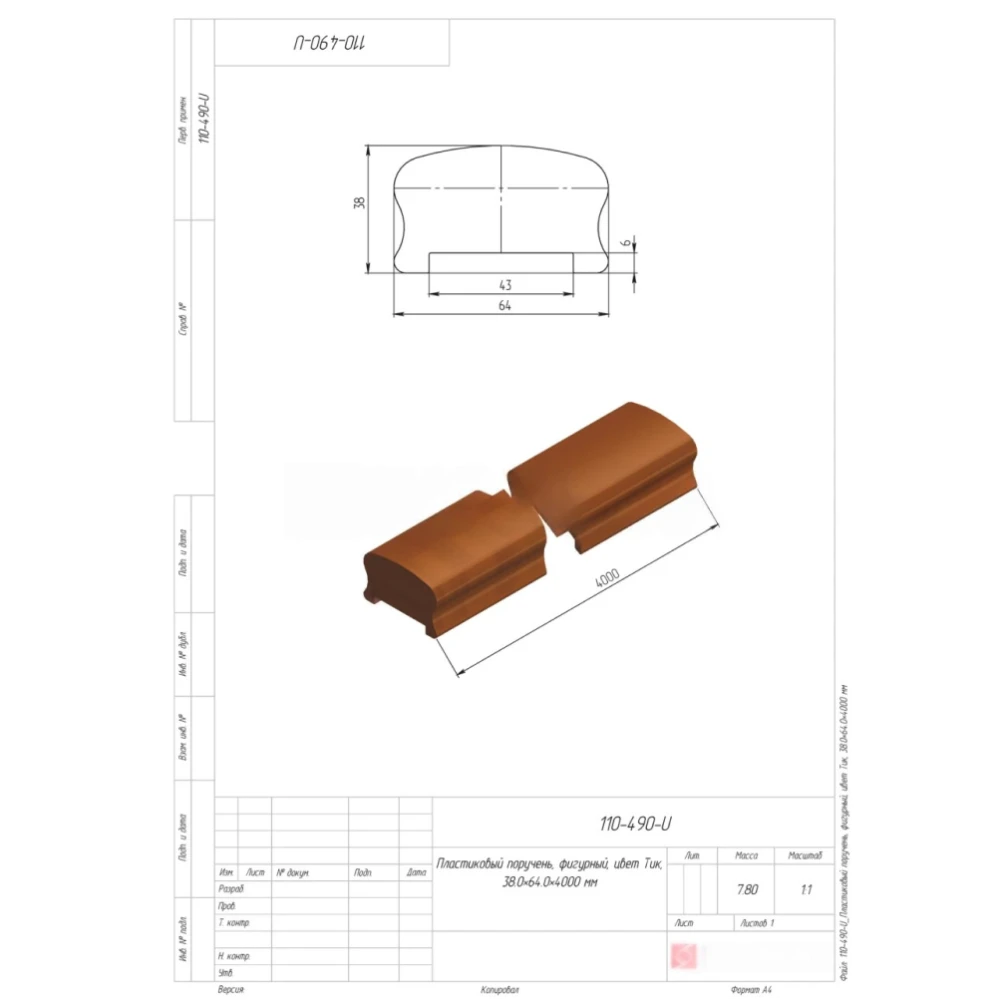 | МатериалПВХ | ЦветТик | Высота, мм38 |